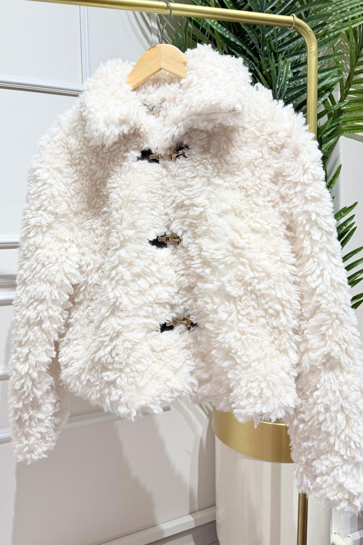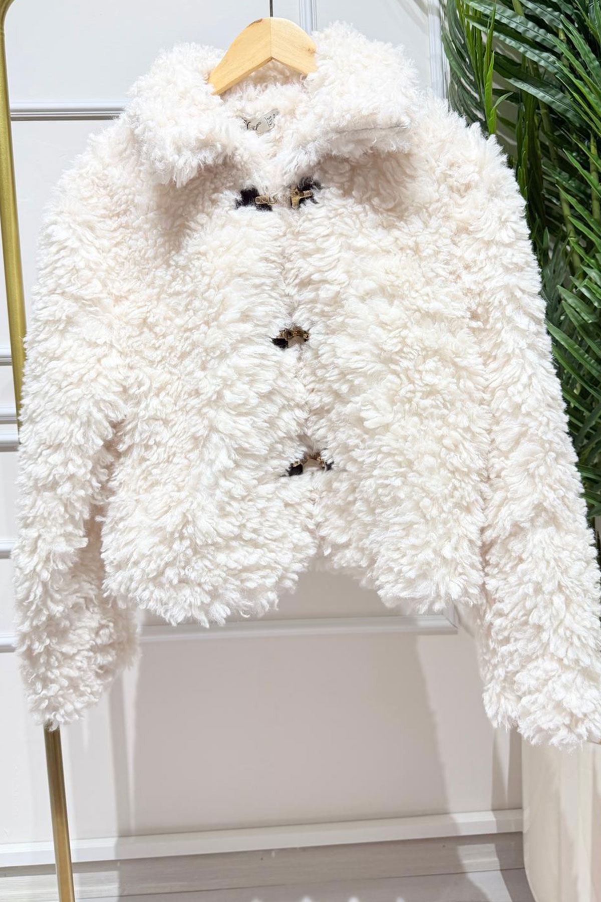 Beyaz Renk Kancalı Kuzu Mont