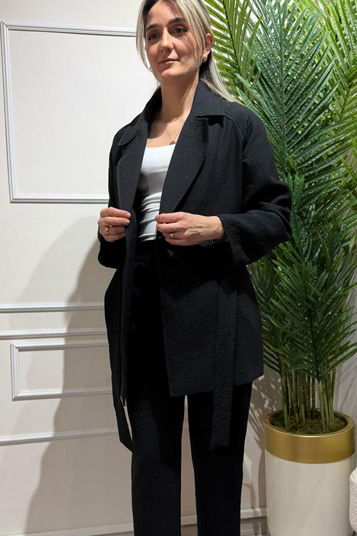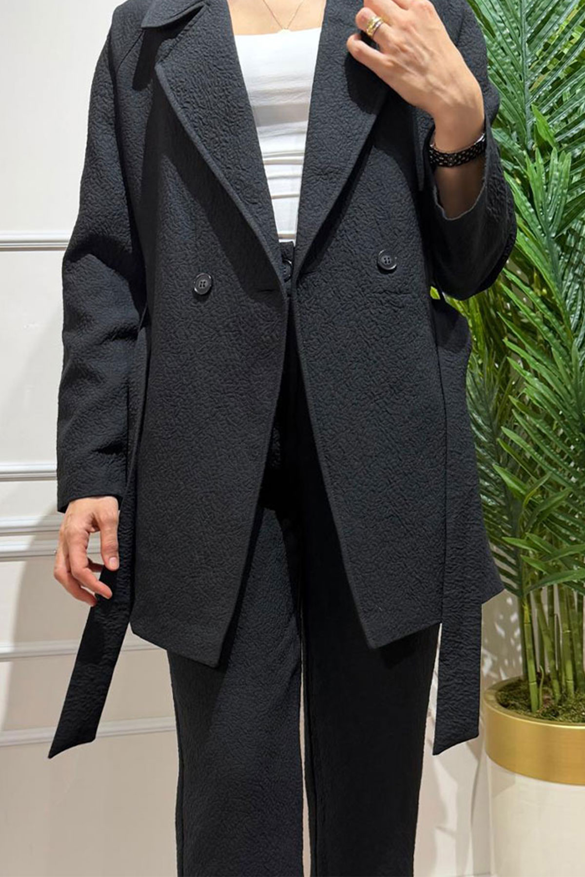 Siyah Pantolon Ceket Takım Seyyar Kemerli