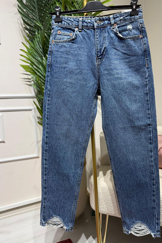 Yüksek Bel Paçası Yırtık Straight Fit