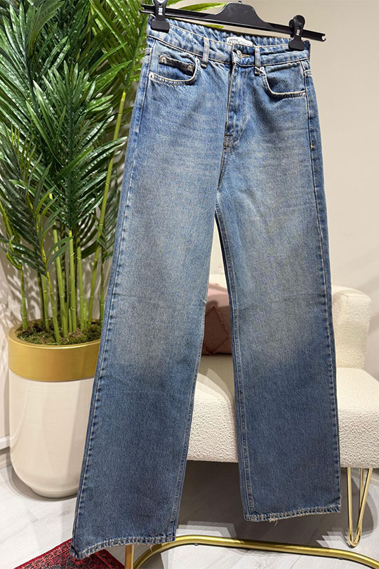 Yüksek Bel Yeşil Yıkama Straight Fit Jean